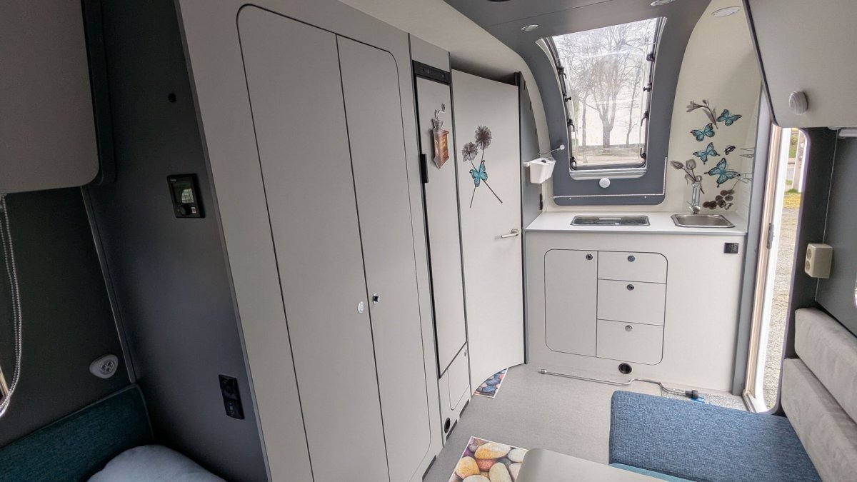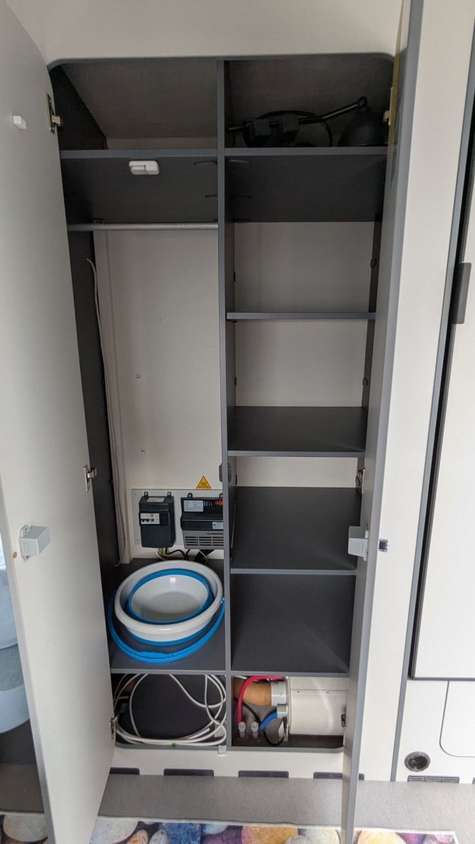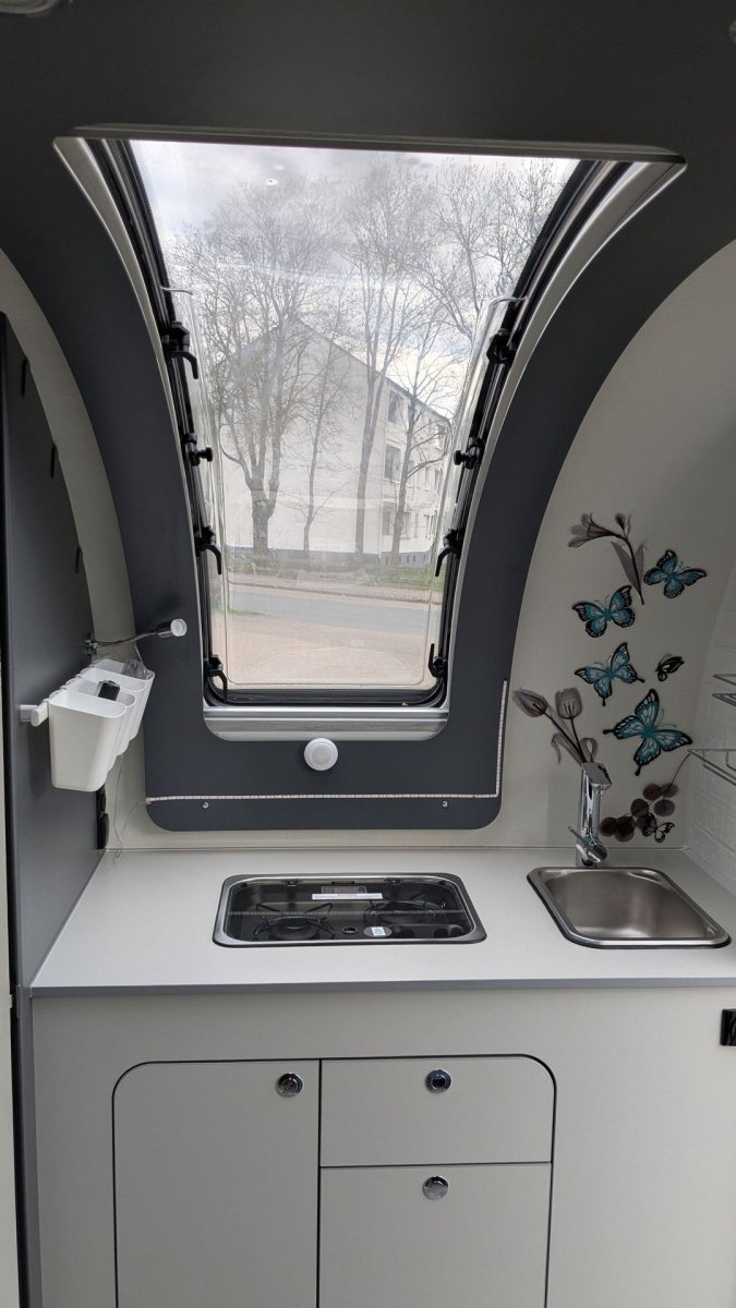 Frischwassertank im Küchenblock verstaut