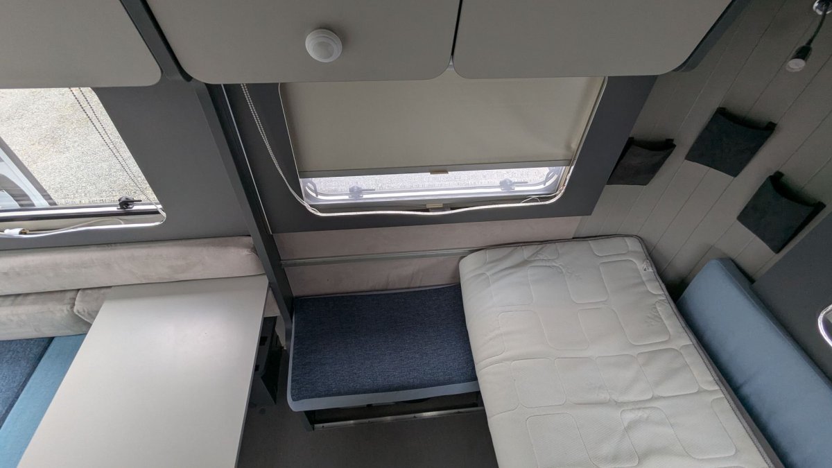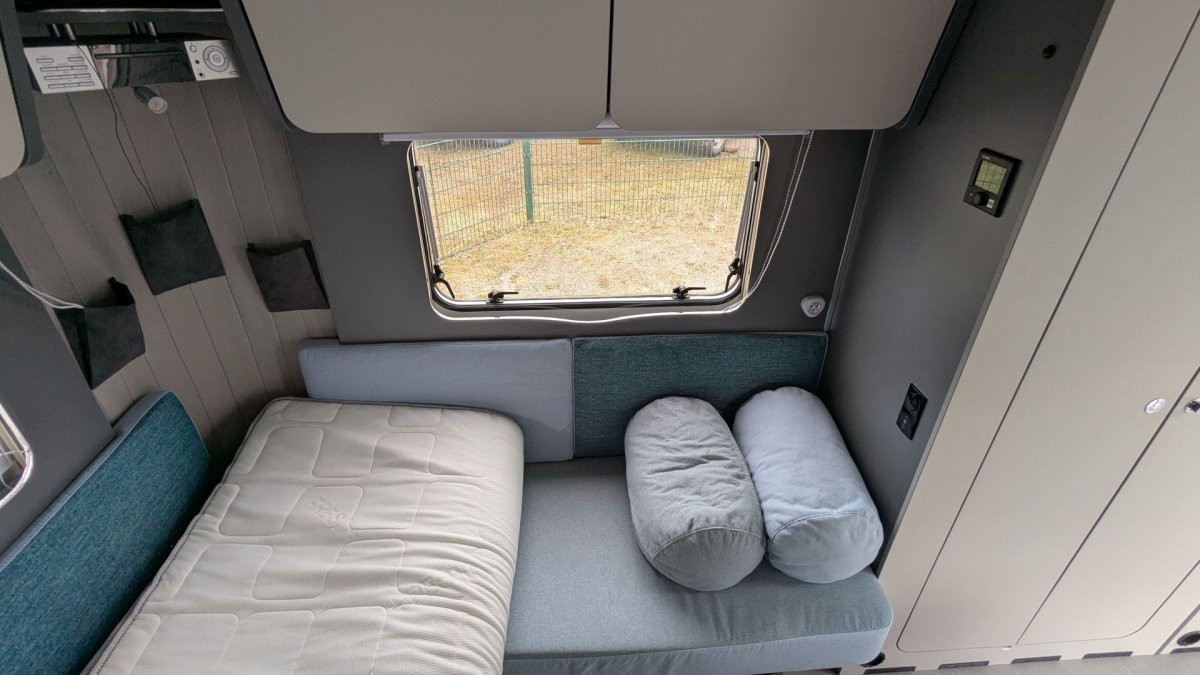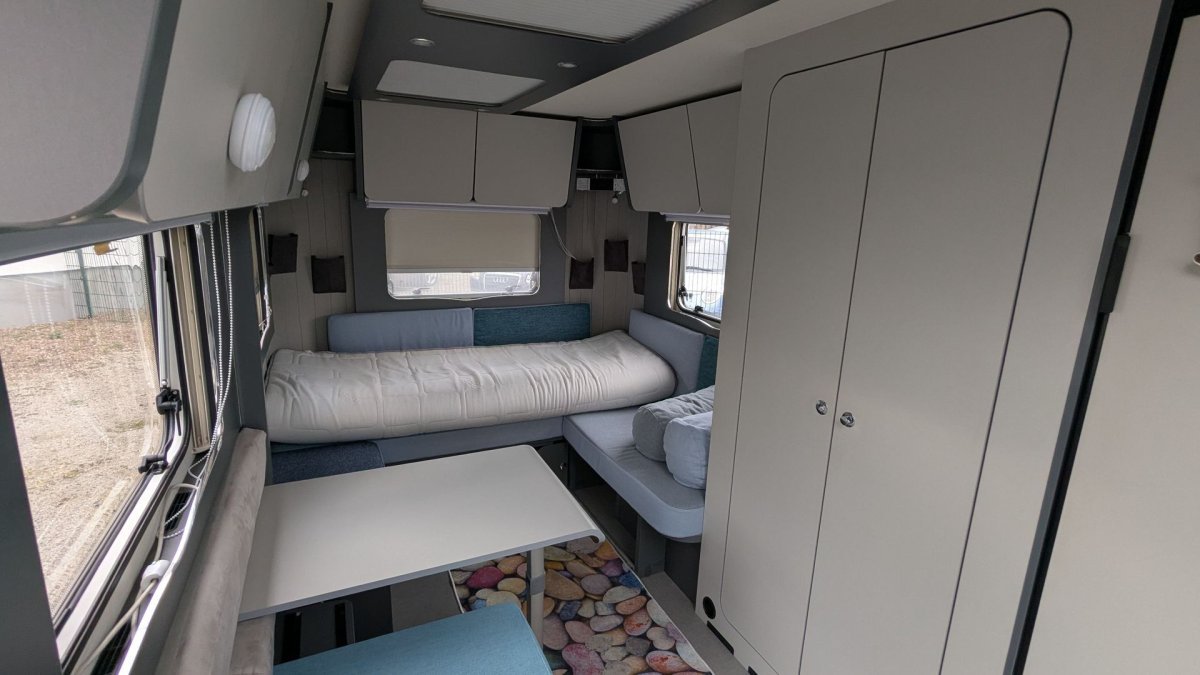 Integrierte Aufnahmeschiene für das COCO Lounge Sonnensegel, um das Fahrzeug verlaufend (erhältlich über die Dethleffs
